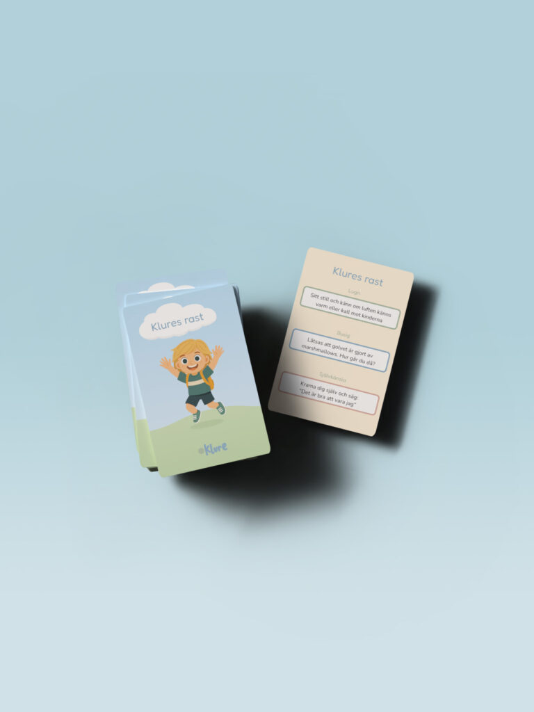 I kortleken finns också Klures rast och Kluras frågor som ger pauser för lek, samtal och fantasi. De skapar variation, stärker självkänslan och gör stunden tillsammans ännu rikare.